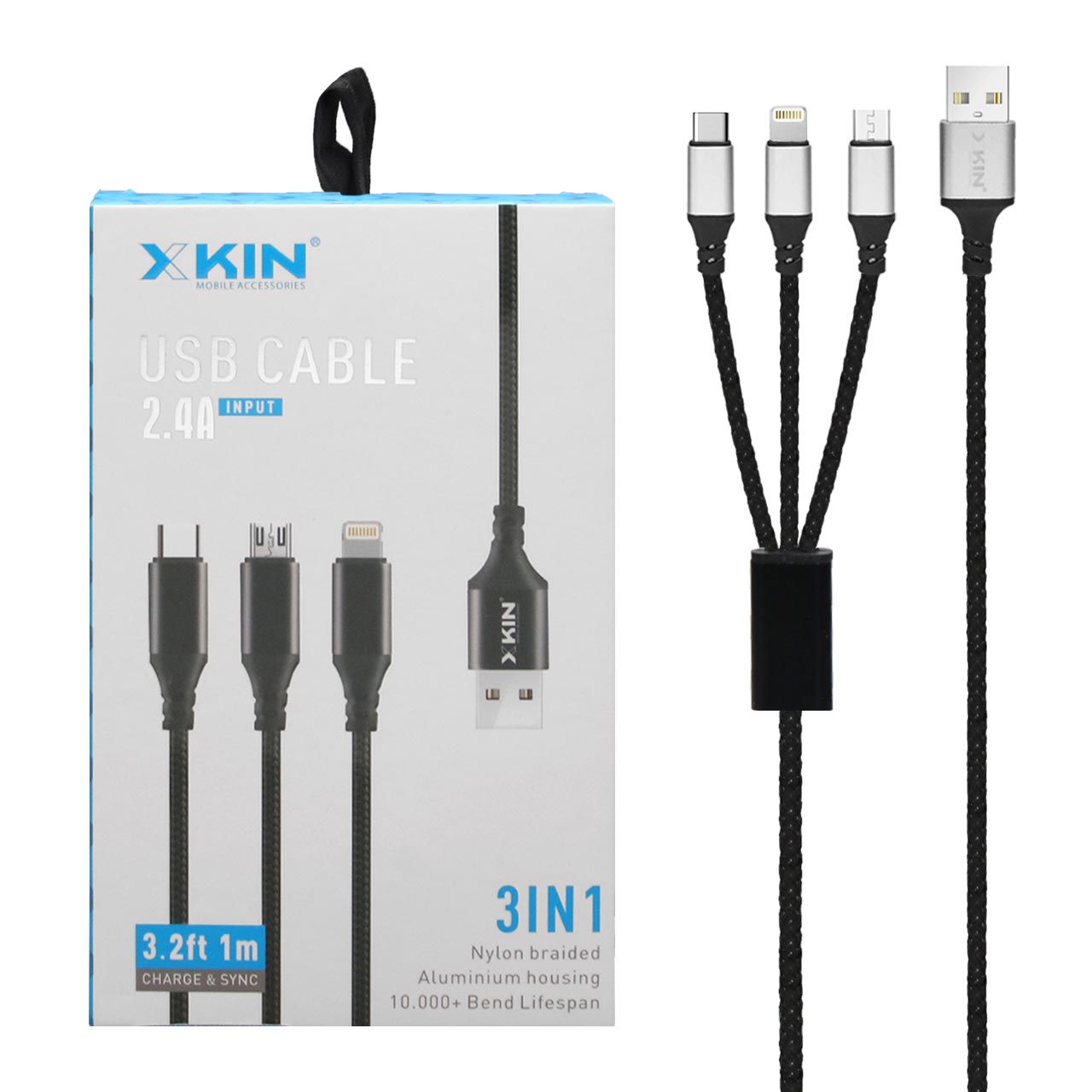 کابل شارژ فست XKIN 3 in 1cable XK-CA09-طوسی