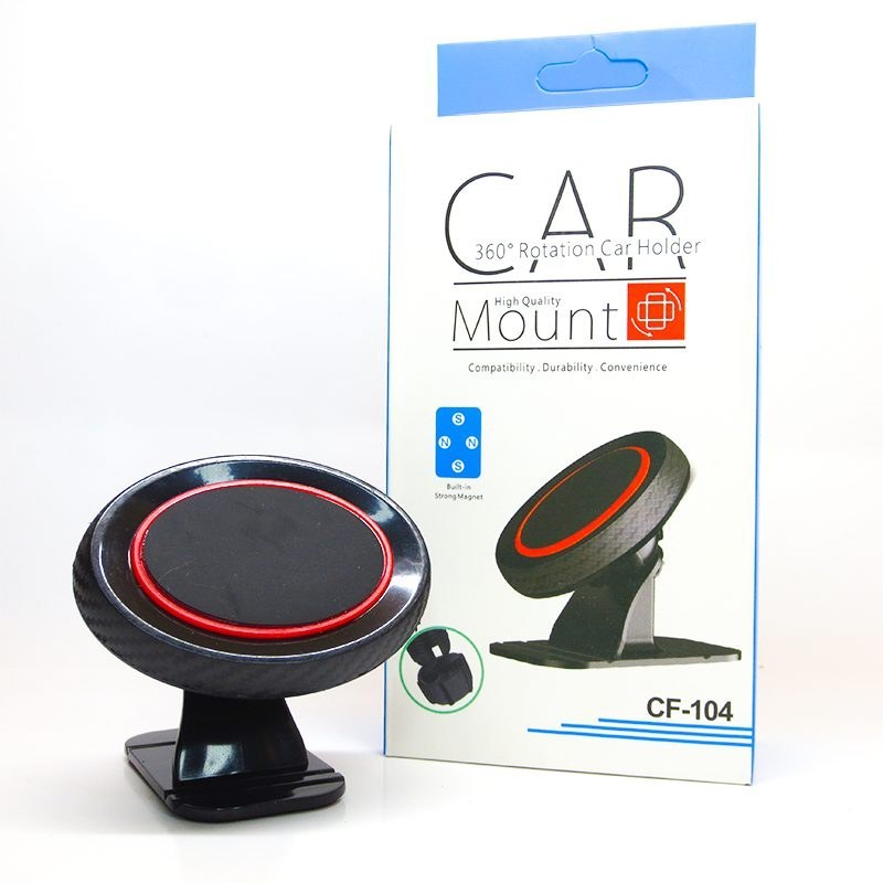 آهن ربای بزرگ و قدرت مند کار شده در هولدر آهنربایی مدل CF-104 باعث شده نگهداری موبایل توسط این محصول مطمئن و ایمن باشد. جنس ساخت بدنه این نگهدارنده ی موبایل داشبوردی از پلاستیک فشرده ABS است و مقاومت بالایی در برابر ضربه و فشار دارد. این هولدر اهن ربایی از سه تیکه شامل پایه داشبورد ، مهره و پایه موبایل است که با شل و سفت کردن مهره میتوانید زاویه را تغییر دهید.